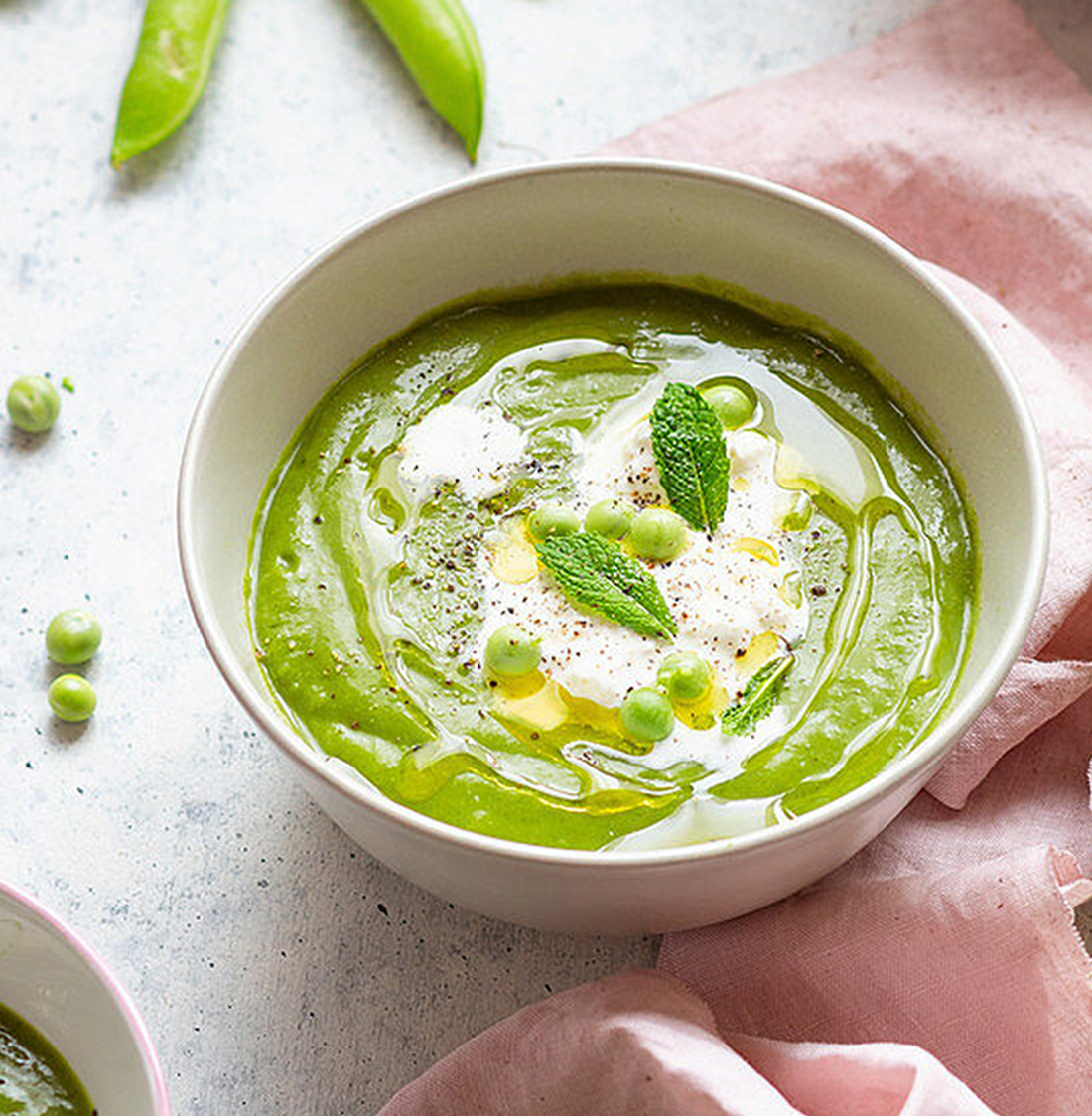 Velouté de petits pois à la menthe