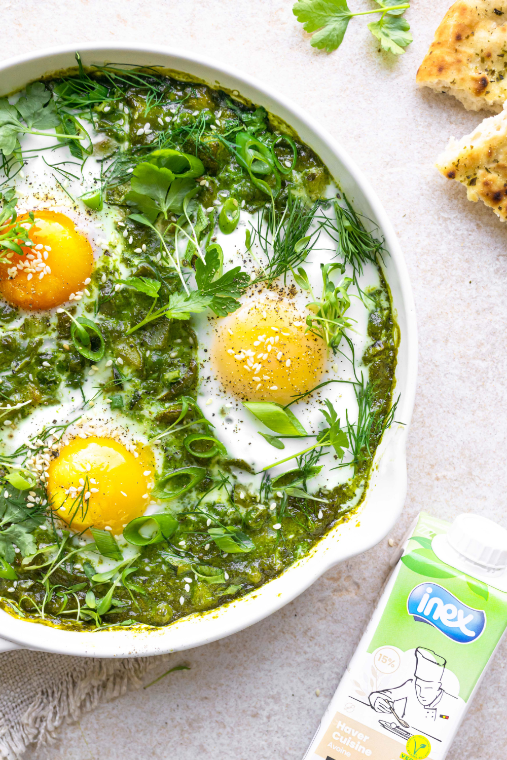 Een feest van groene groenten omarmd door een romige kruidensaus, dankzij de heerlijke touch van Inex Haver Cuisine. Deze eenvoudige en verrassende creatie van foodie Stefanie Baert (@FoodLove) is een ware traktatie voor liefhebbers van smaakvolle, gezonde gerechten.